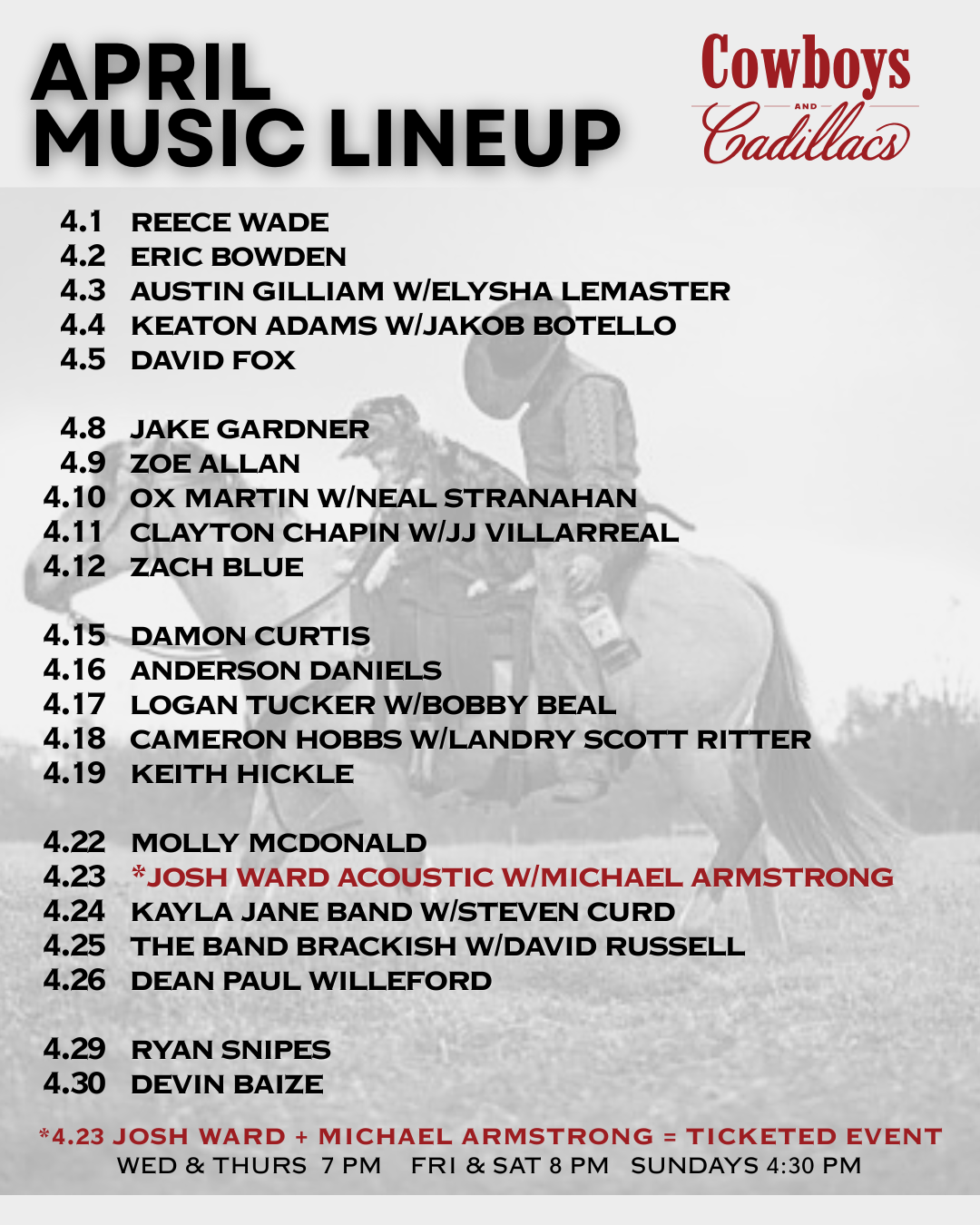 “Cowboys and Cadillacs isn’t just a restaurant or bar. It is a gathering place shaped by family, artistry, and an ever-enduring, iconically independent, tenacious Texas spirit. ”