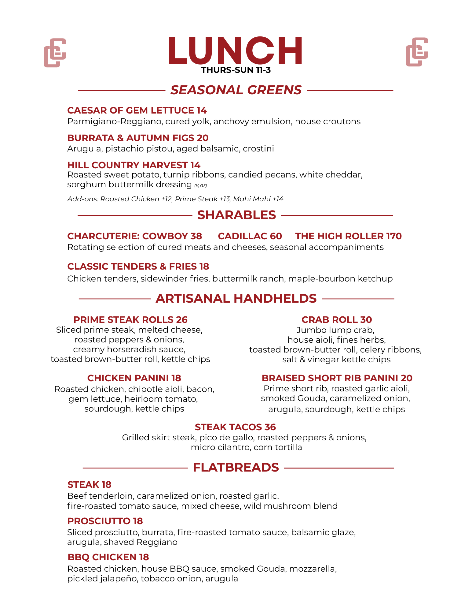 BOLD FLAVORS. THOUGHTFUL CRAFT. PENDLETON UPSCALE DINING MENU View fullsize View fullsize View fullsize FLEETWOOD ROOFTOP MENU View fullsize View fullsize LUNCH & BRUNCH MENU View fullsize View fullsize